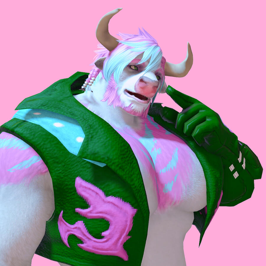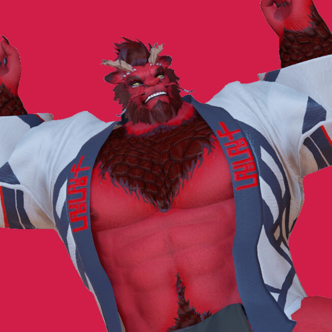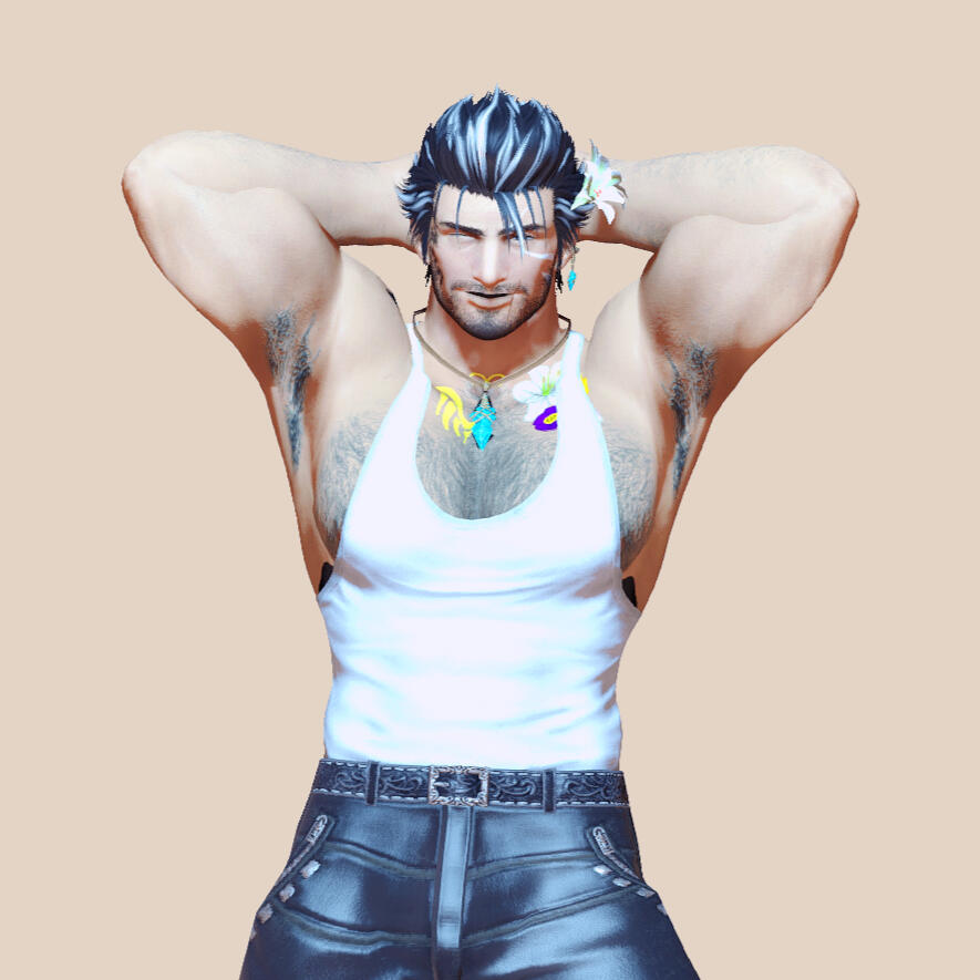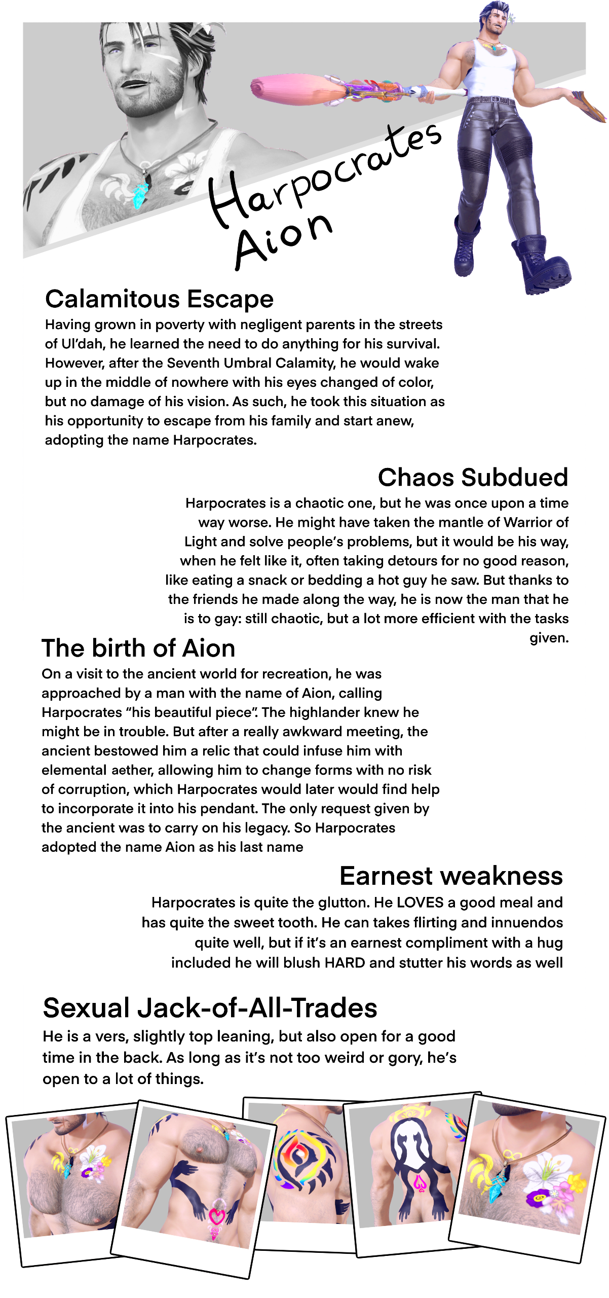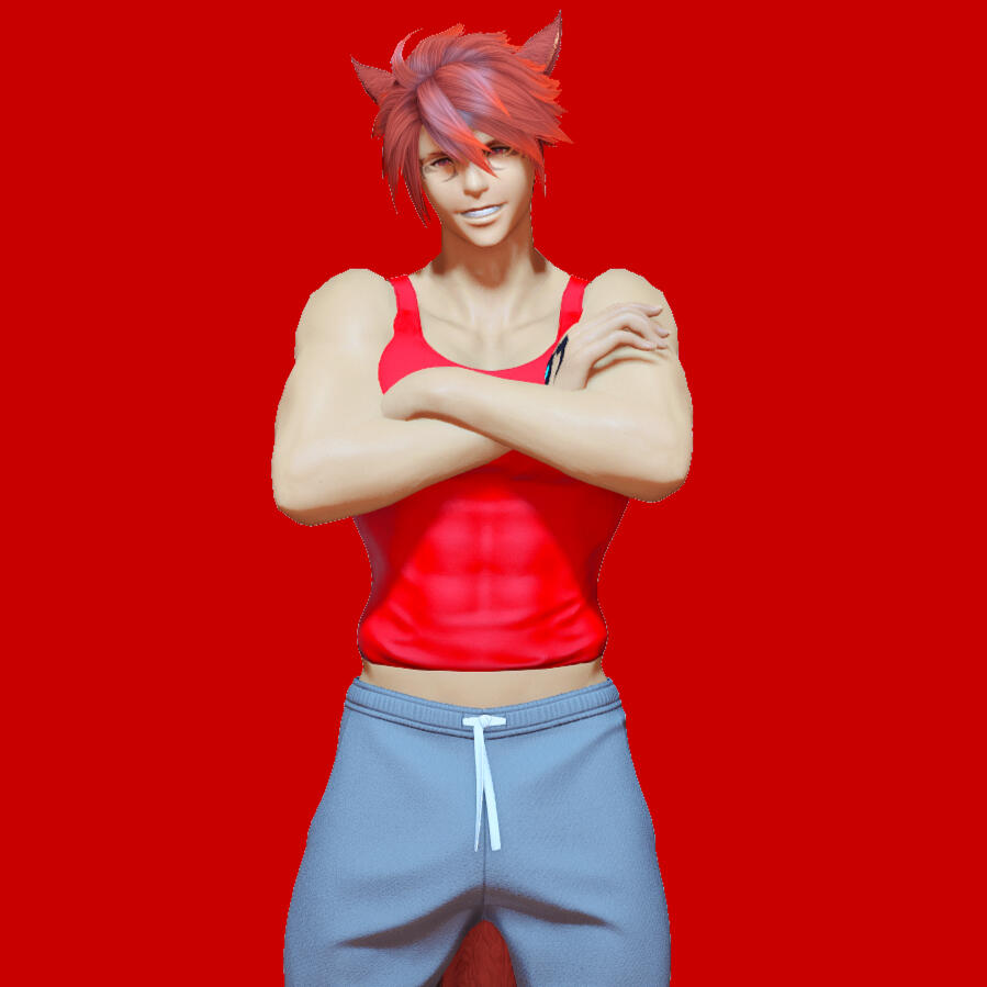 Atlas was once a reckless young adult, wishing for stardom, and he used the one thing he could count on: his body. And thus he began his fighter career in Ul'dah's coliseum. His furious barrage of punches earned him many a victory, and eanred him a reputation of a dreaded fighter. However, fighting takes a toll on the body, and once his body began to give out, he was forced to retire, which let him to become much less careful with his shape, and got lazier, but is still the same cheeky guy.