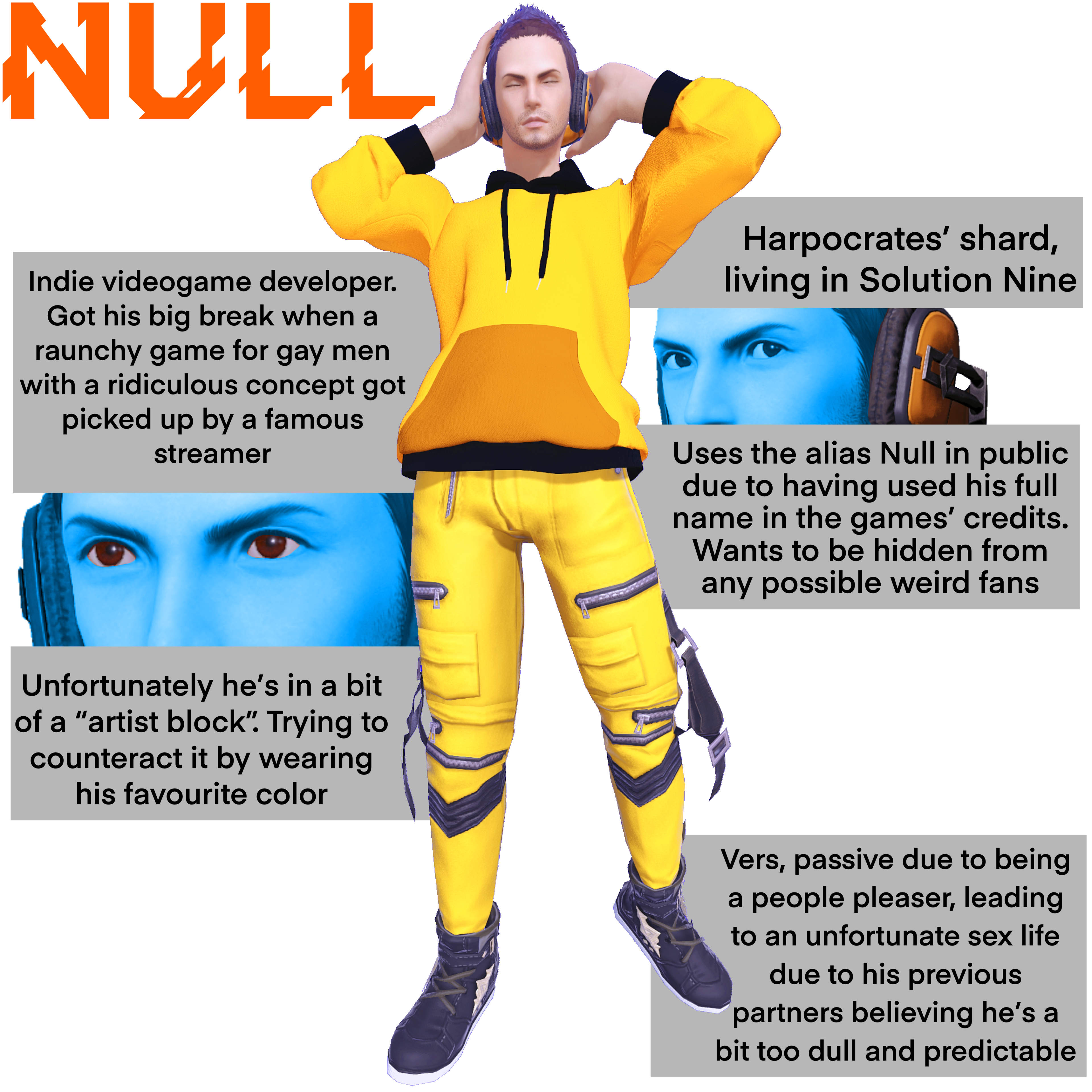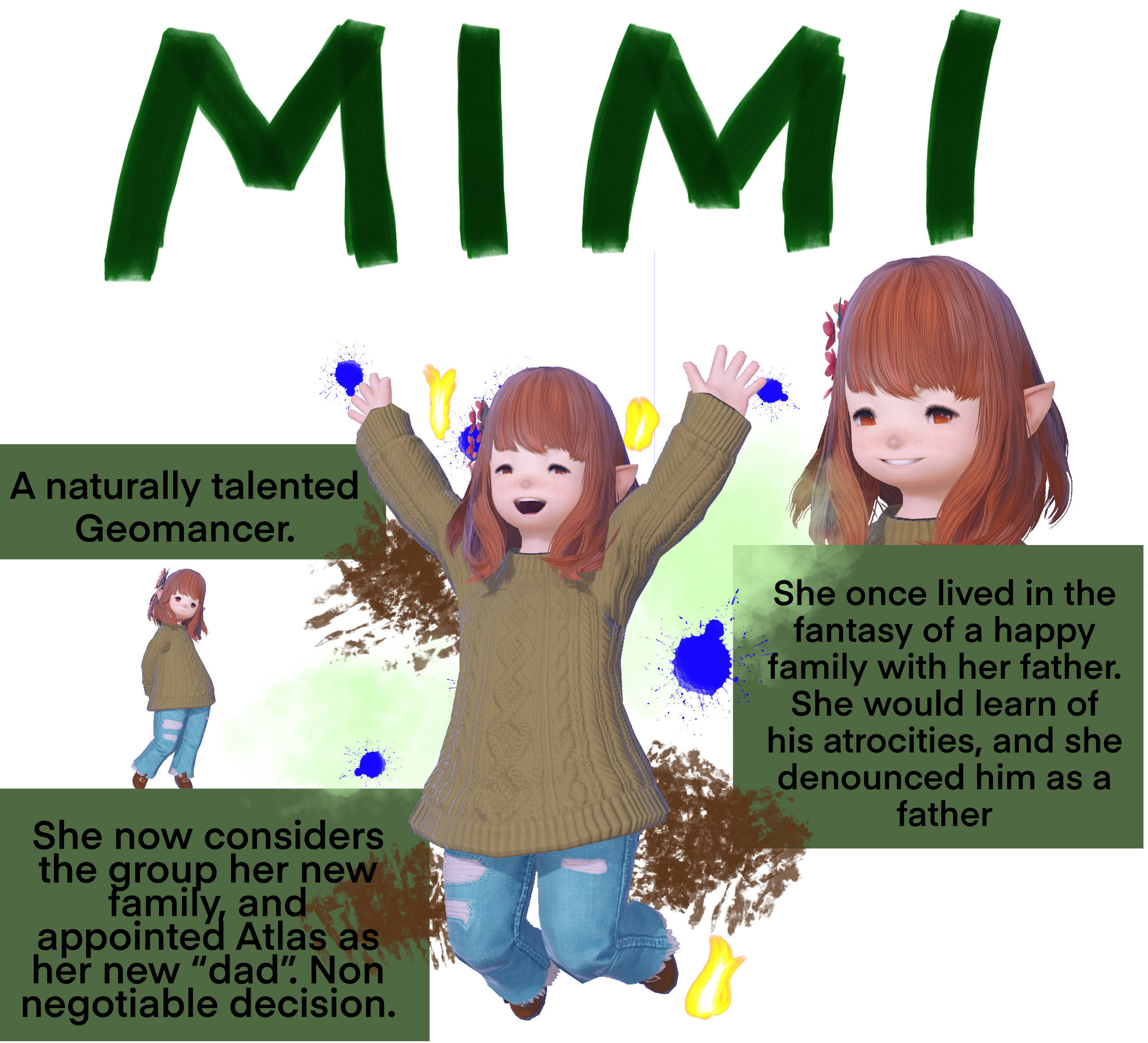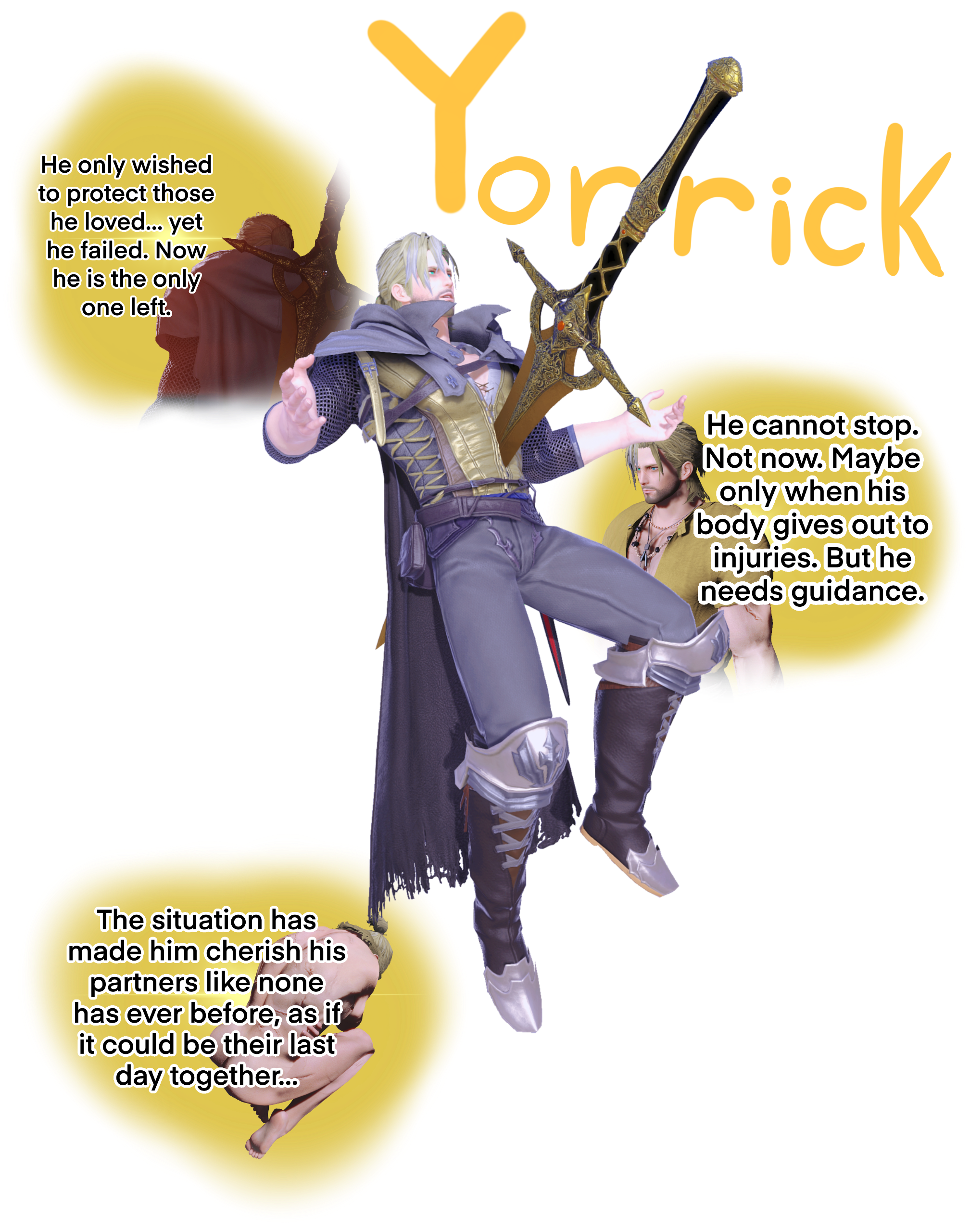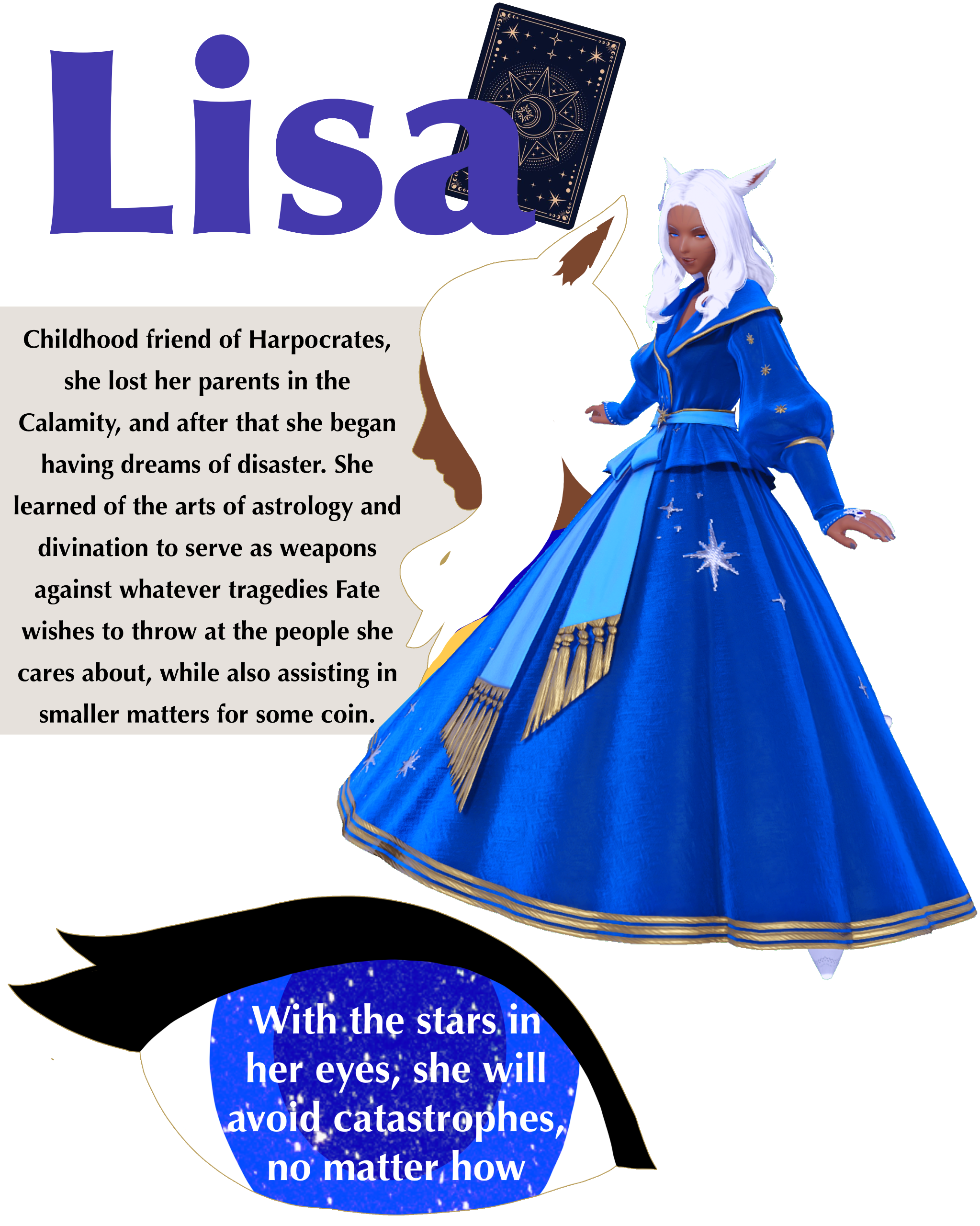 An Au Ra who once suffered a troubled past, he now lives as a freelance retainer to Ishgard's high houses, with the sole purpose of cleaning their manors. Thankfully, his skills allow him to do do quite the thorough job, being also capable of "cleaning" those who would dare to try and harm his employers.
