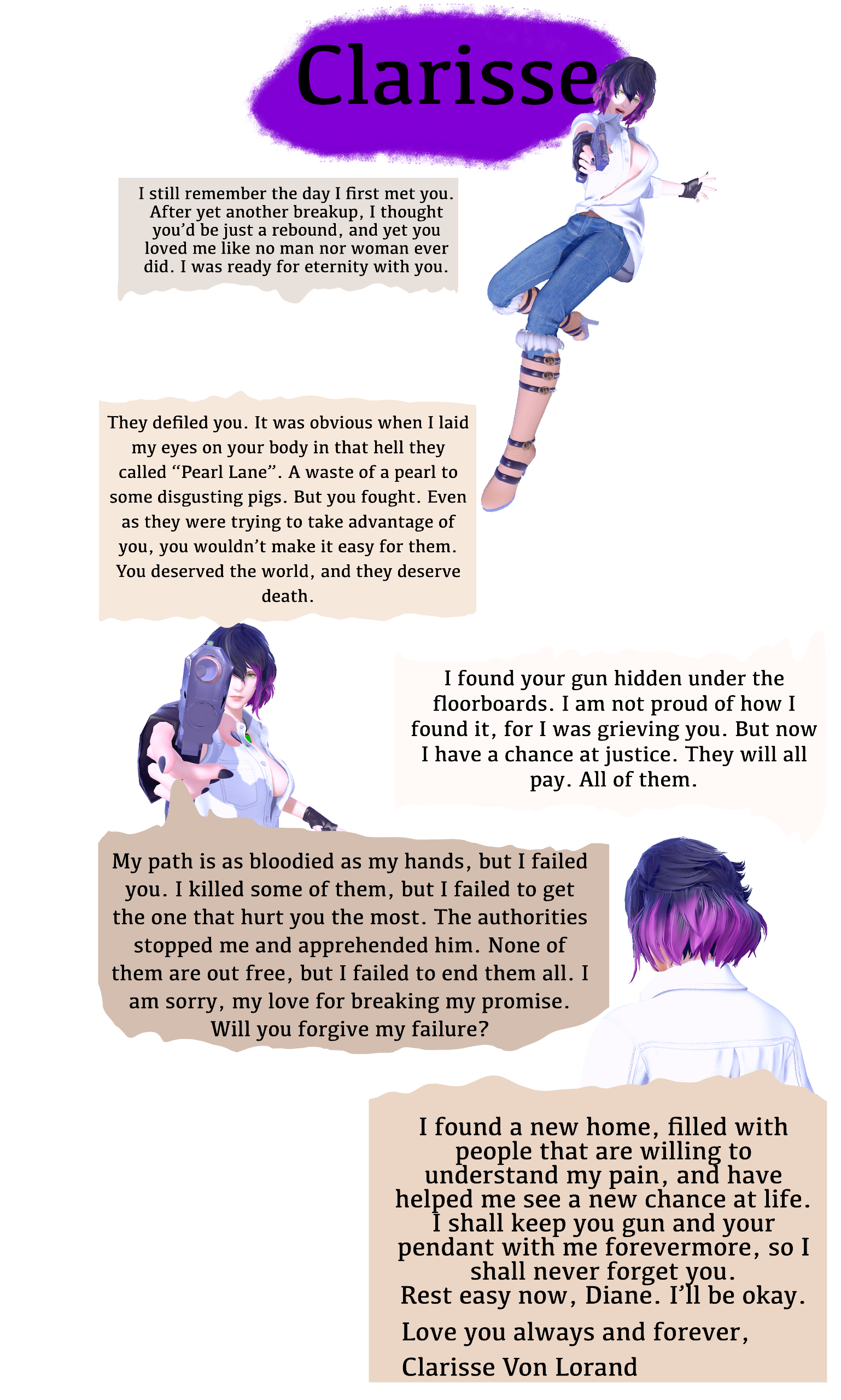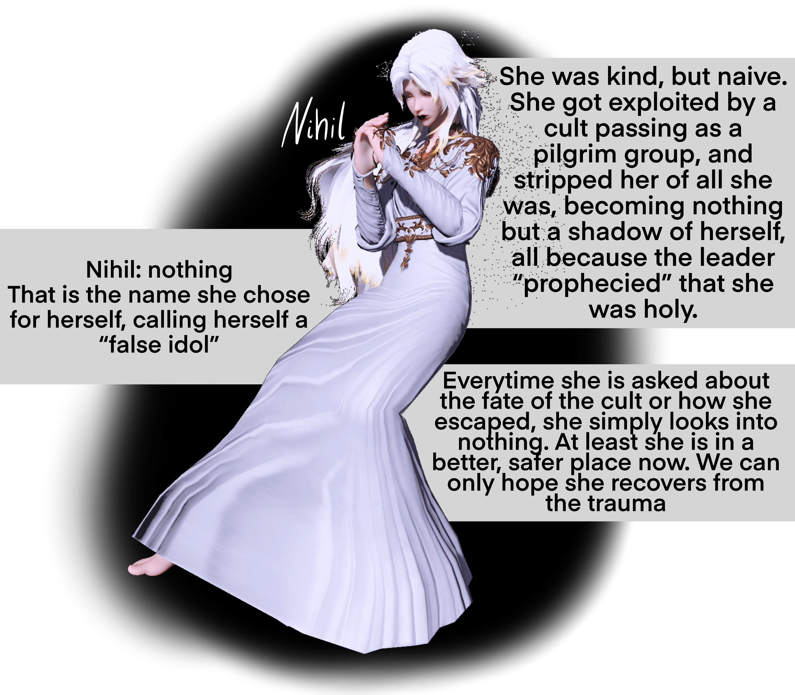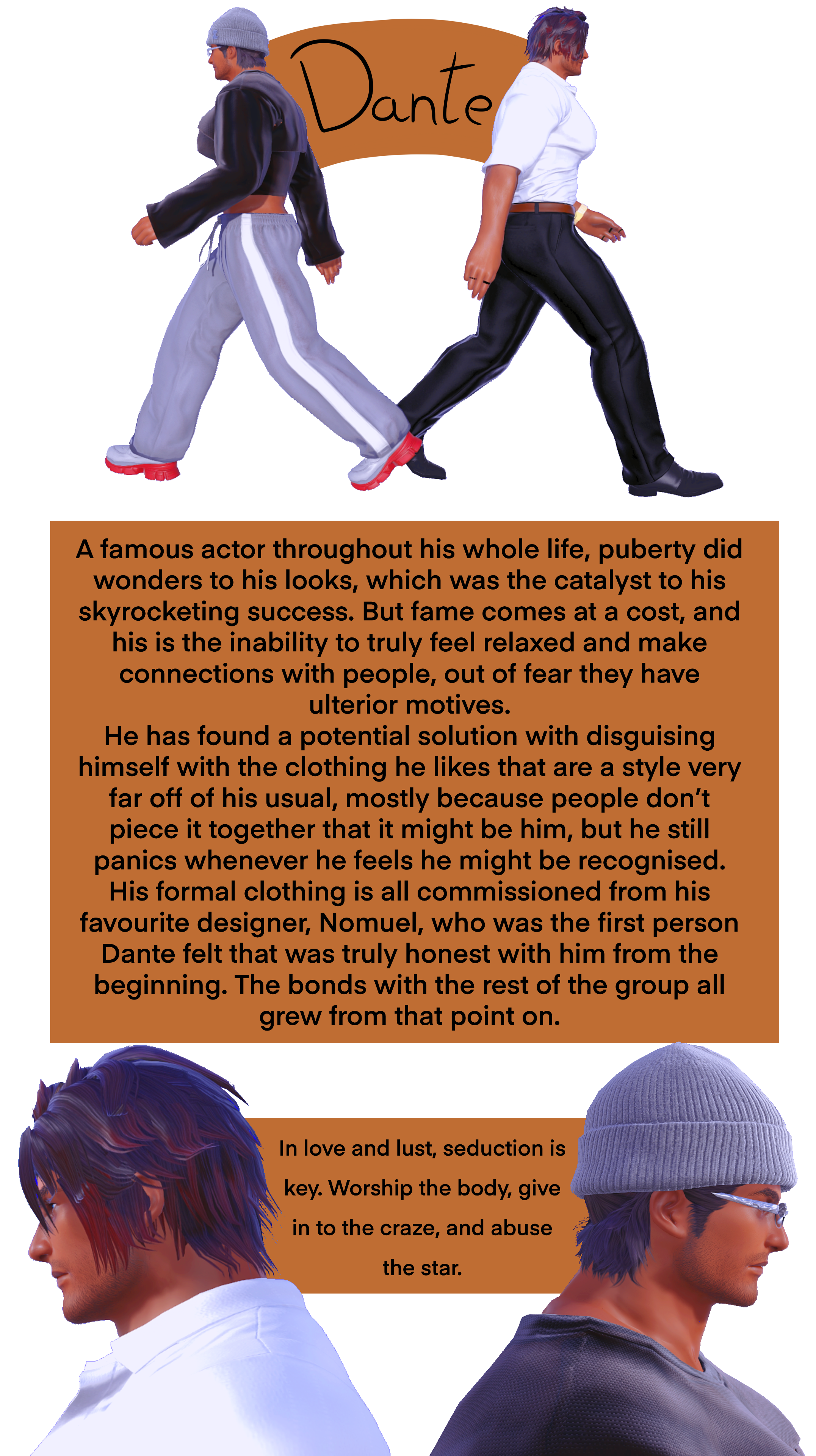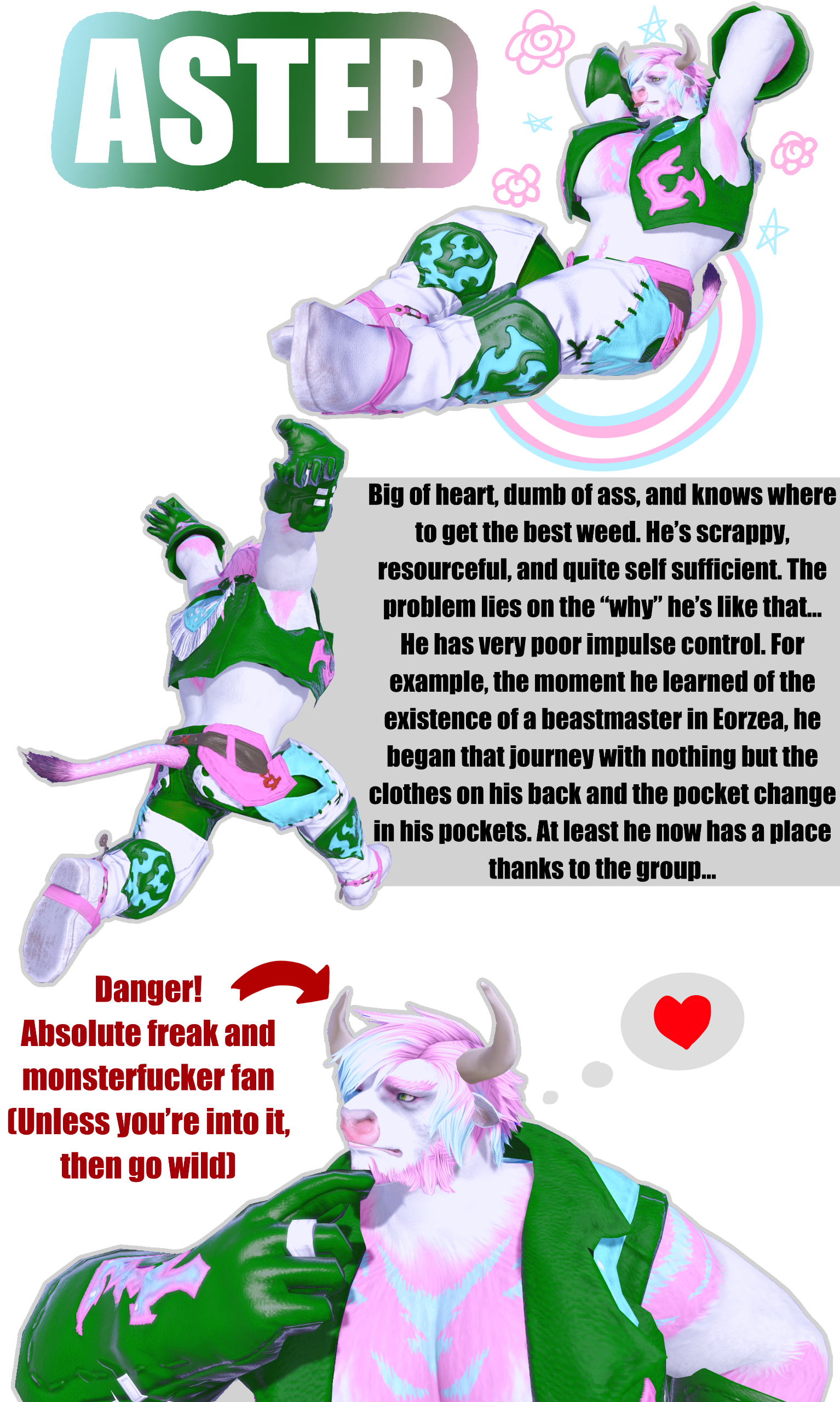 An Au Ra who once suffered a troubled past, he now lives as a freelance retainer to Ishgard's high houses, with the sole purpose of cleaning their manors. Thankfully, his skills allow him to do do quite the thorough job, being also capable of "cleaning" those who would dare to try and harm his employers.