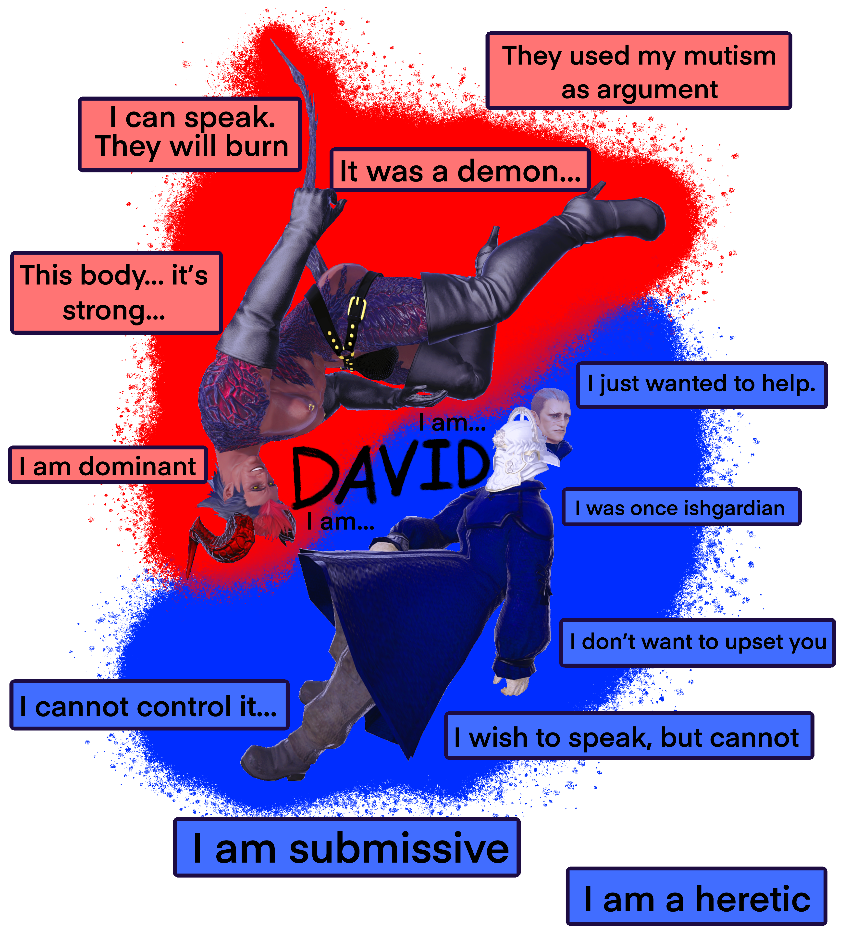 As for him as a person, he is deeply unserious, preferring to make jokes and/or mock his enemy to rile them up, regardless of winning or losing situations. Surprisingly, his attitude in normal daily life is a lot tamer, showing a level of constraint that very few expected from one such as him. But because he finds more joy being unrestrained, he is most of the time in garlean territory entertaining himself disfiguring the monstrocities that reside.