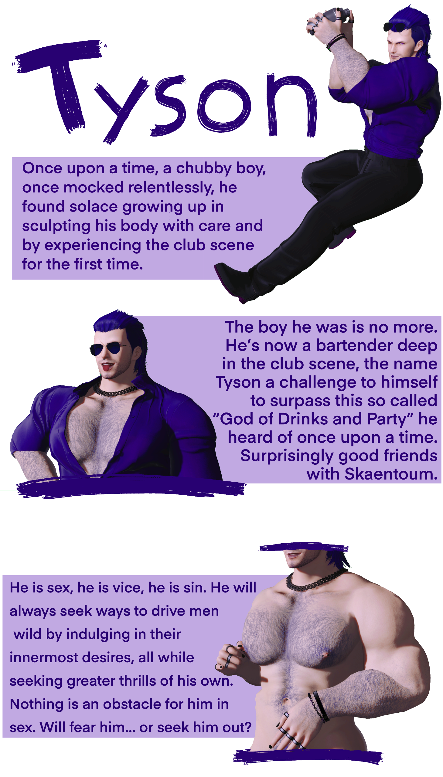 Usually kept to himself, he prefers to respong using nods and grunts, or short sentences. However, rumors say that in the bedroom, he is a different beast, and some seem to leave after an encounter with him slightly flatter than they were...