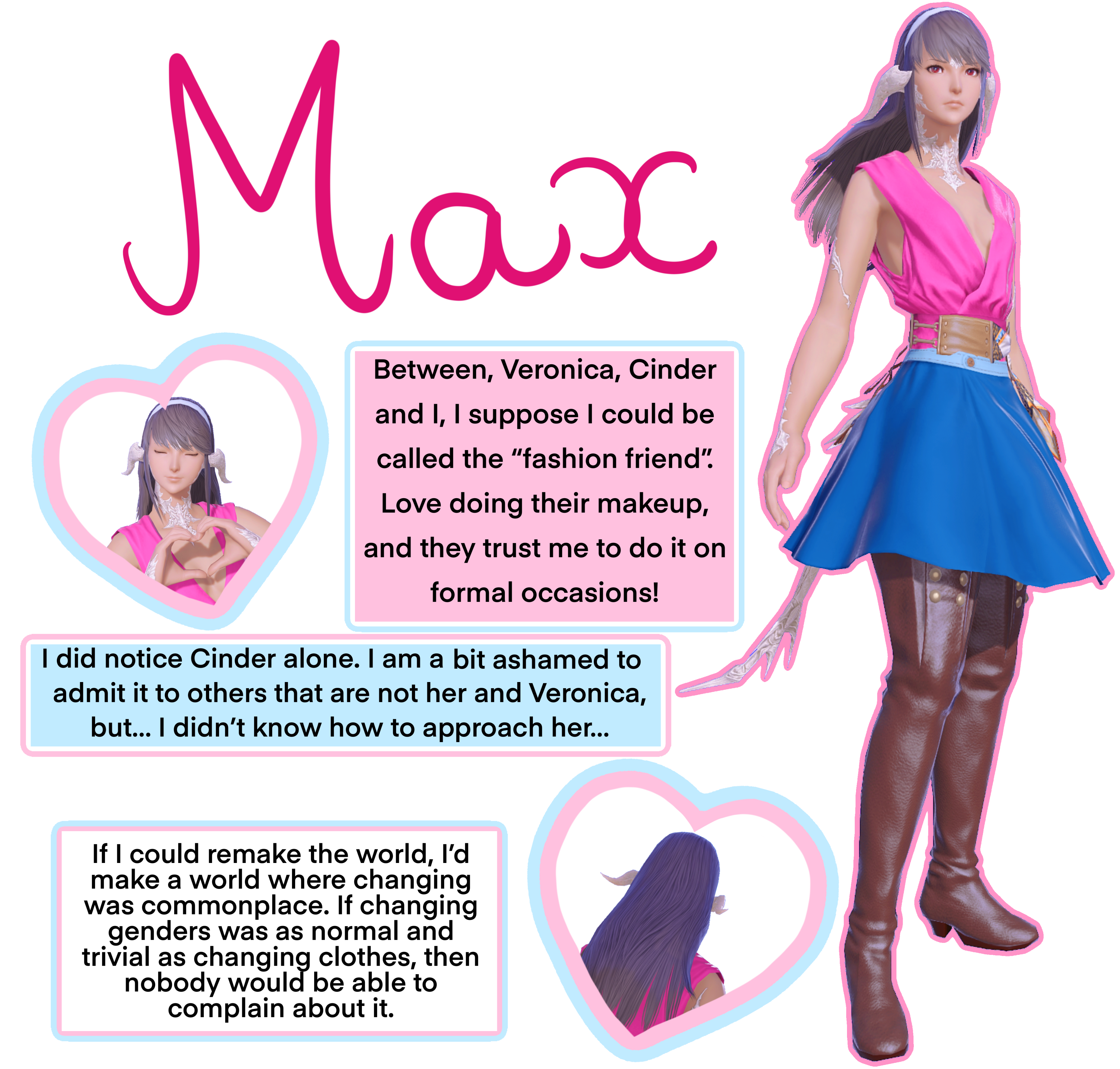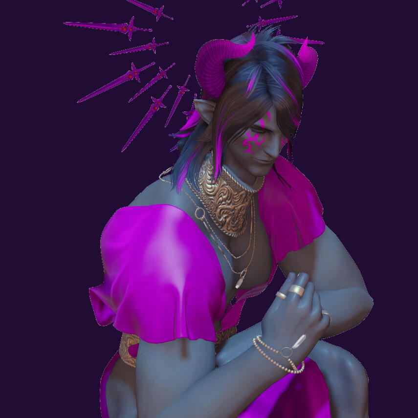 Nomuel was always quite the worker on their village, striving for flawlessness whenever they involved themself in any task. However, the very same tasks bored them to no end, and always wanted to do something more with in life. They decided to leave the village, adopting their current name and began wandering through the many city states, searching for something, which they found in fashion. The endless possibilities of the craft opened their eyes to a beauty they believed was without equal.