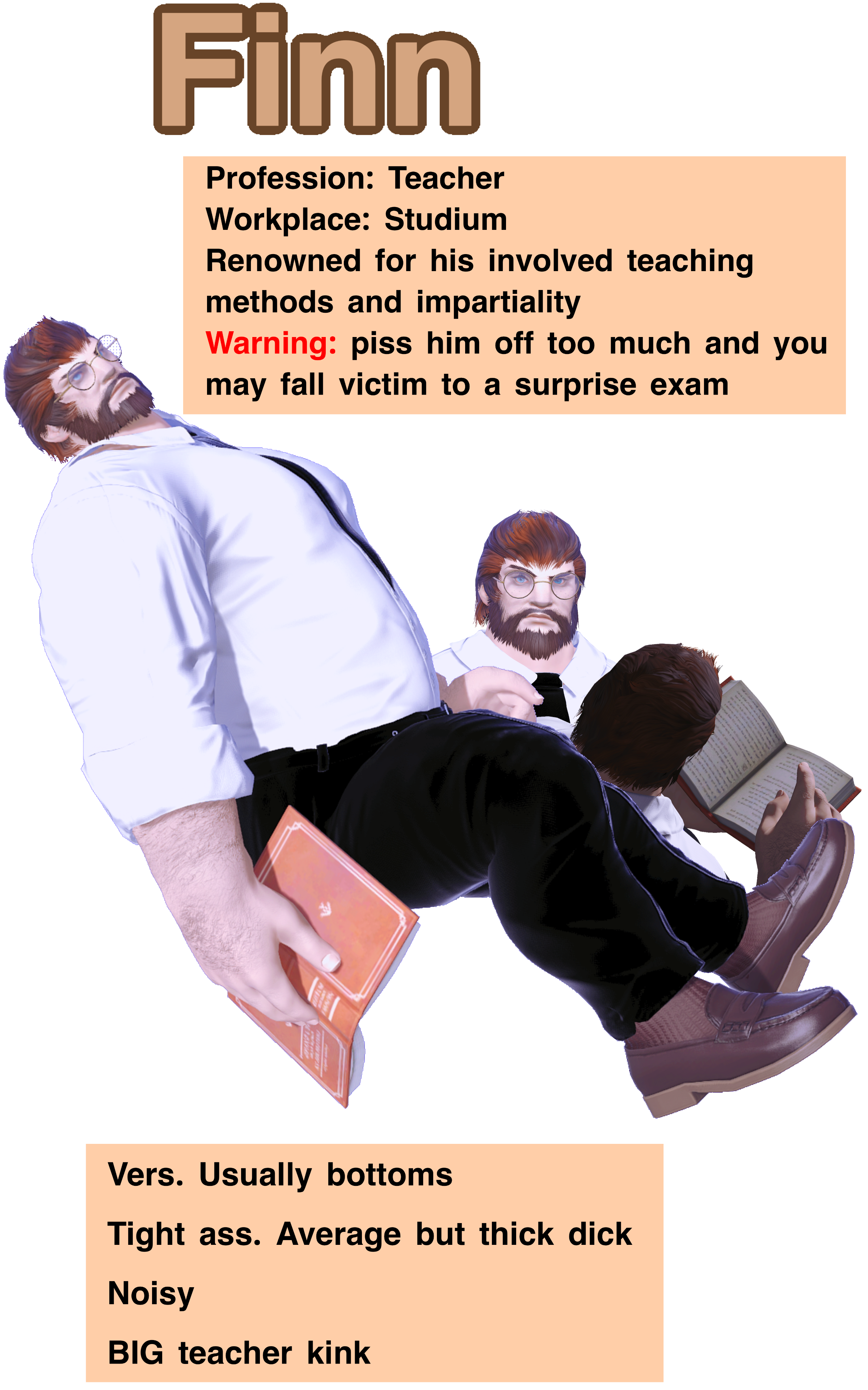 A vers fella. He likes being called "daddy" and call his partner(s) "bub". He's quite lazy, preferring any position where's he merely sits or lays down without anything else, but his hip work is out of this world both in giving and taking