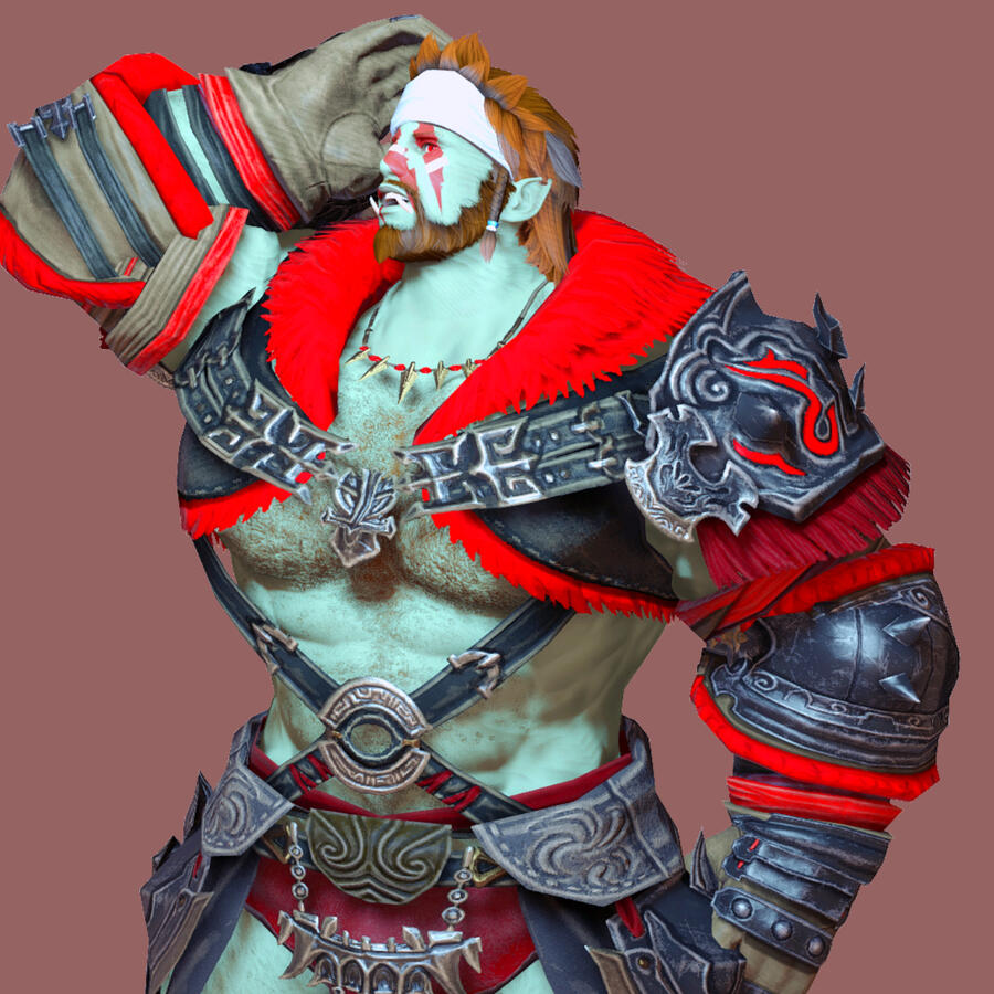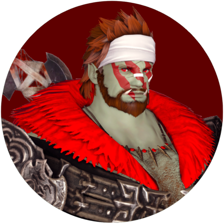 A half orc roegadyn, he inherited the apparent bad luck that seems to course through an orc's blood, however he tries his best to take it in stride.