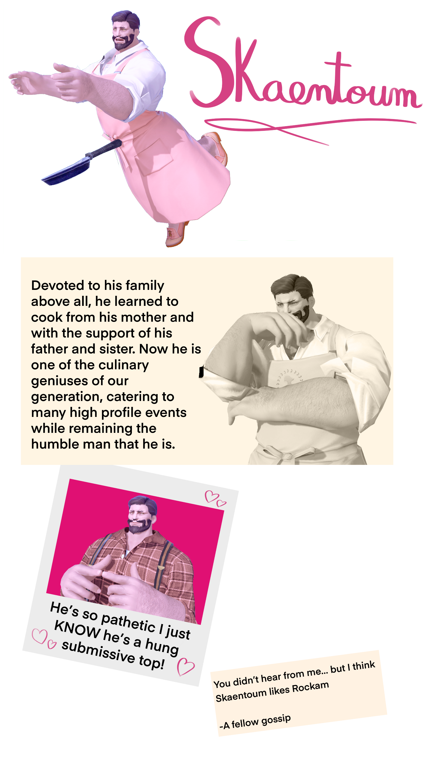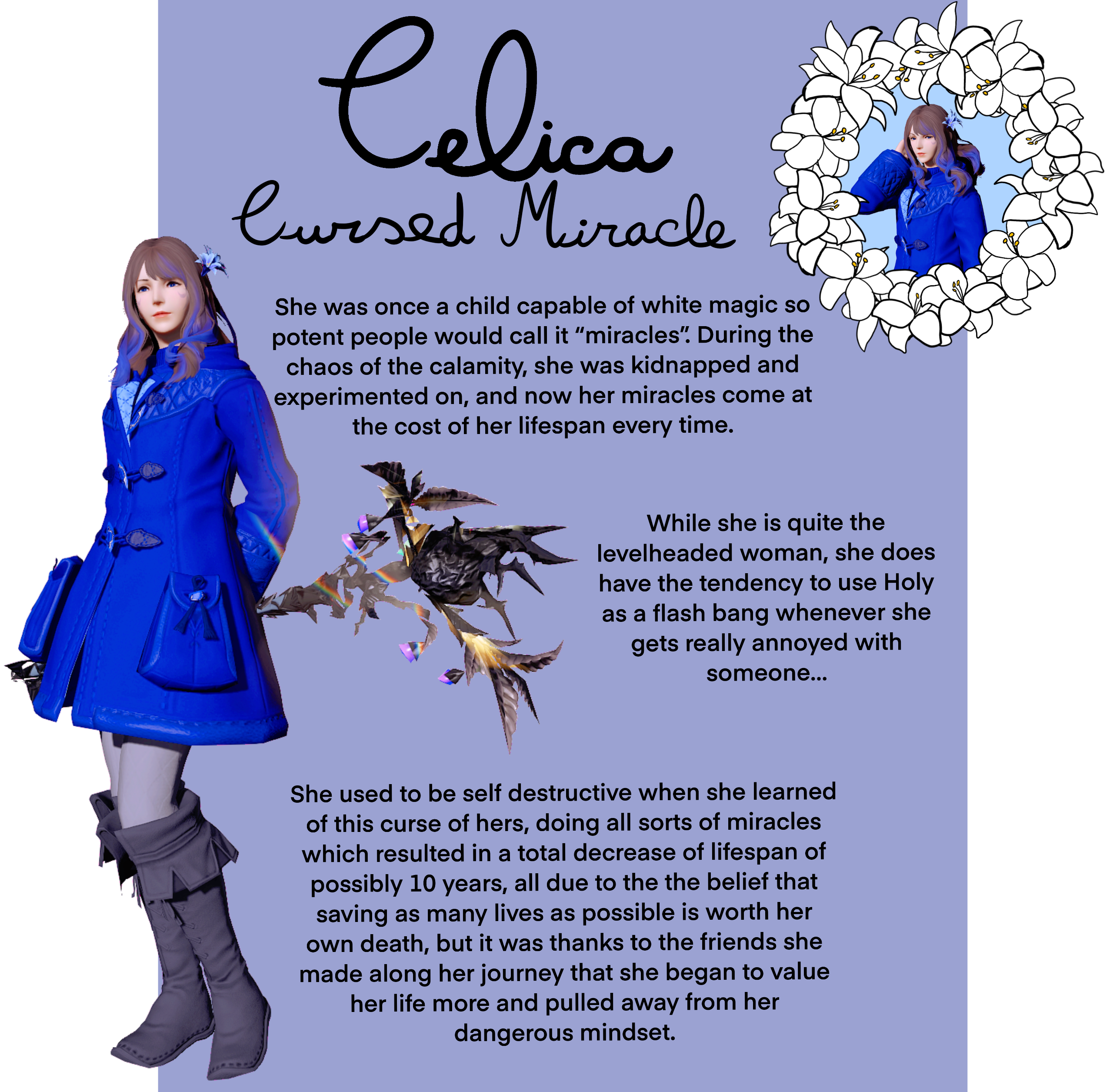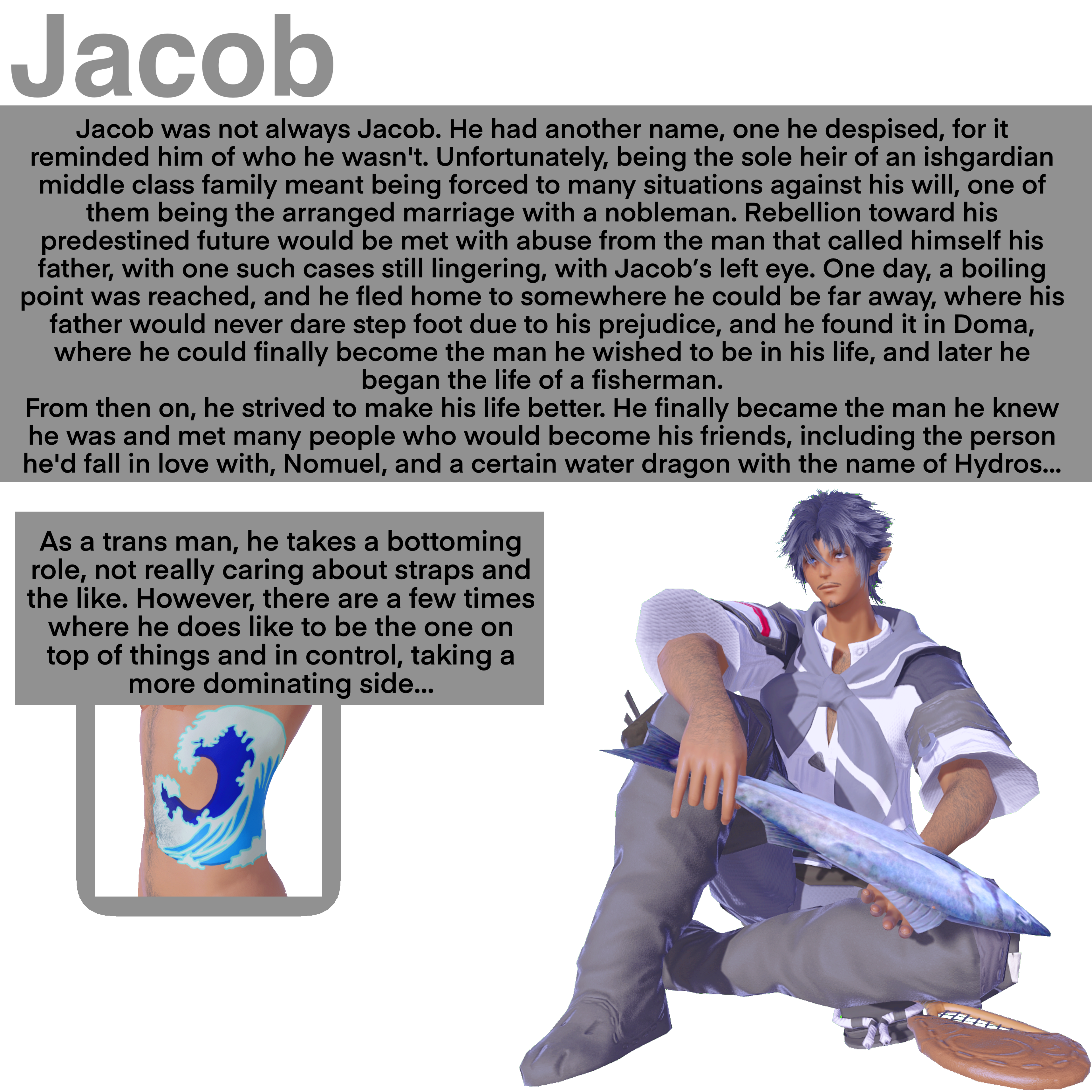 They picked up the needle, and soon found themself pouring their heart into the craft, quickly gaining a reputation. During one of their trips to Doma for inspiration, they found an elezen fisherman named Jacob, and their friendship would one day blossom to love