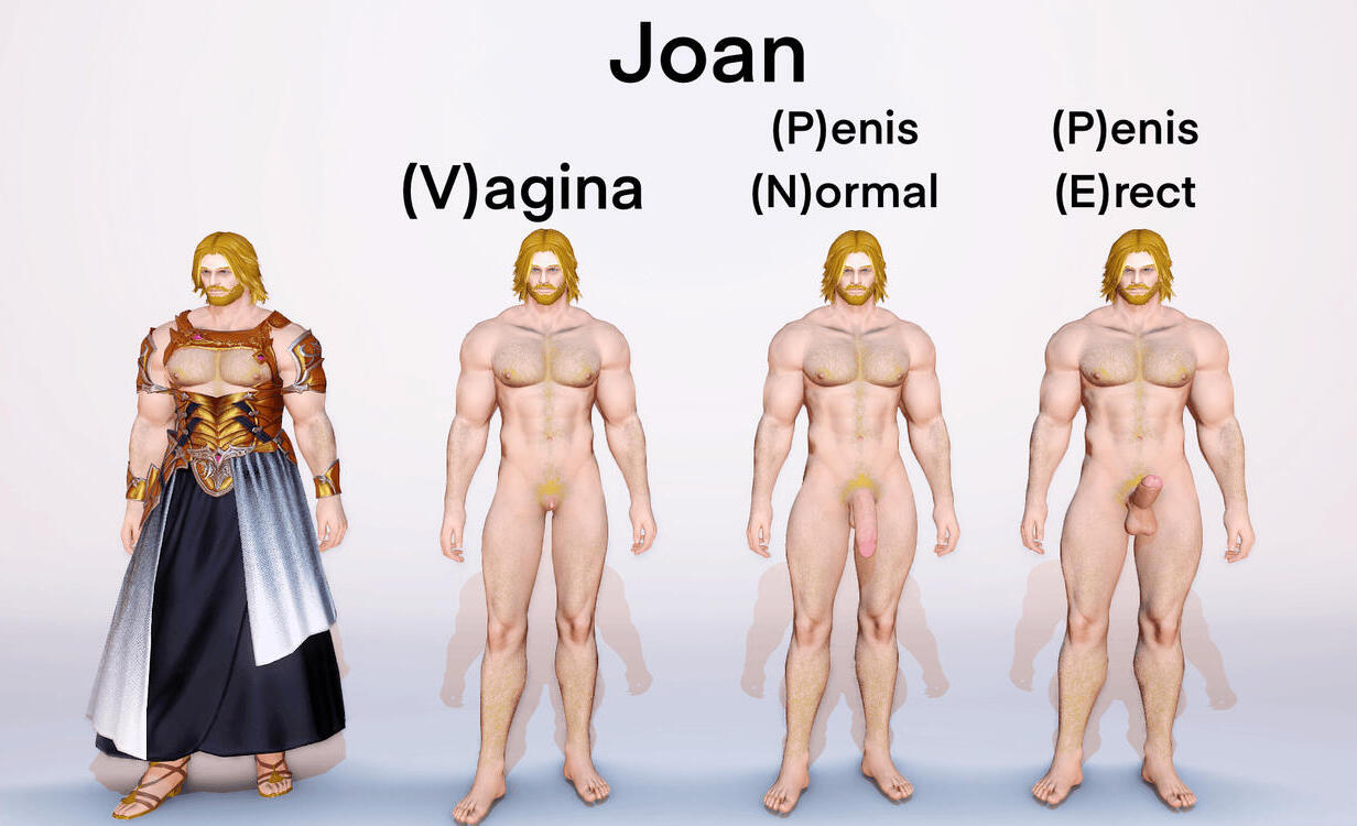 Joan and both of their split selves have the same characteristics: a genitalia capable of transforming into either a penis or a vagina. And just like you'd expect from an immortal minor divinity, they have CENTURIES of experience, ready to use it to please any partner(s) they may have at the moment