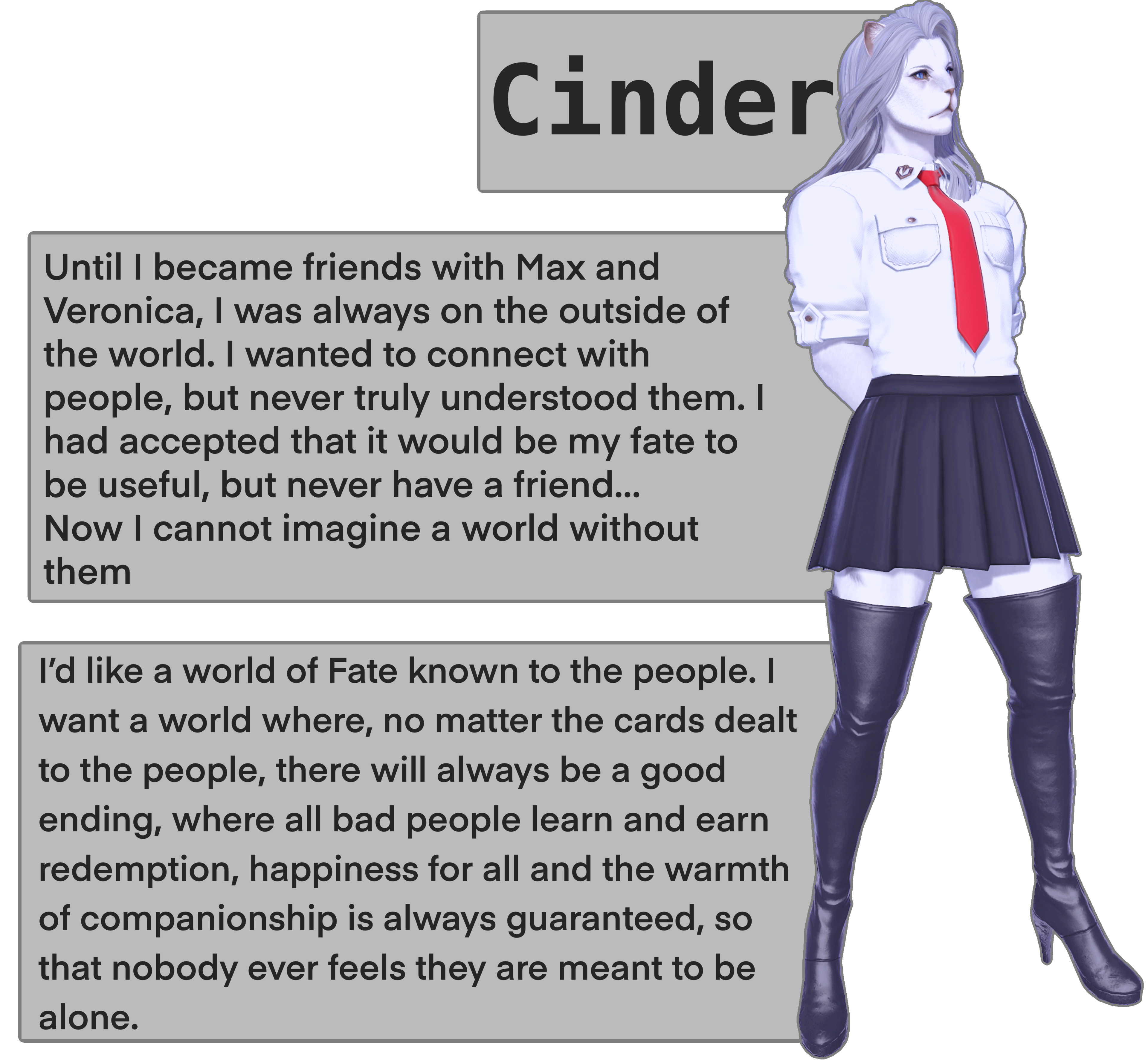 Some call them a minor divinity. Others a construct created and given life by the Twelve to wander the world. The truth? Divinity, but the other origin sounds more interesting to the people. But one thing is certain, he has divine powers. Joan is capable of giving life to inanimate objects, and retrieve the same life from them without the need to damage the object in question. He also is capable of splitting himself and his powers into two different forms: Dion, the one capable of bestowing this False Life onto objects, and Blake, the one capable of retrieving that life peacefully, in a Beautiful Death.