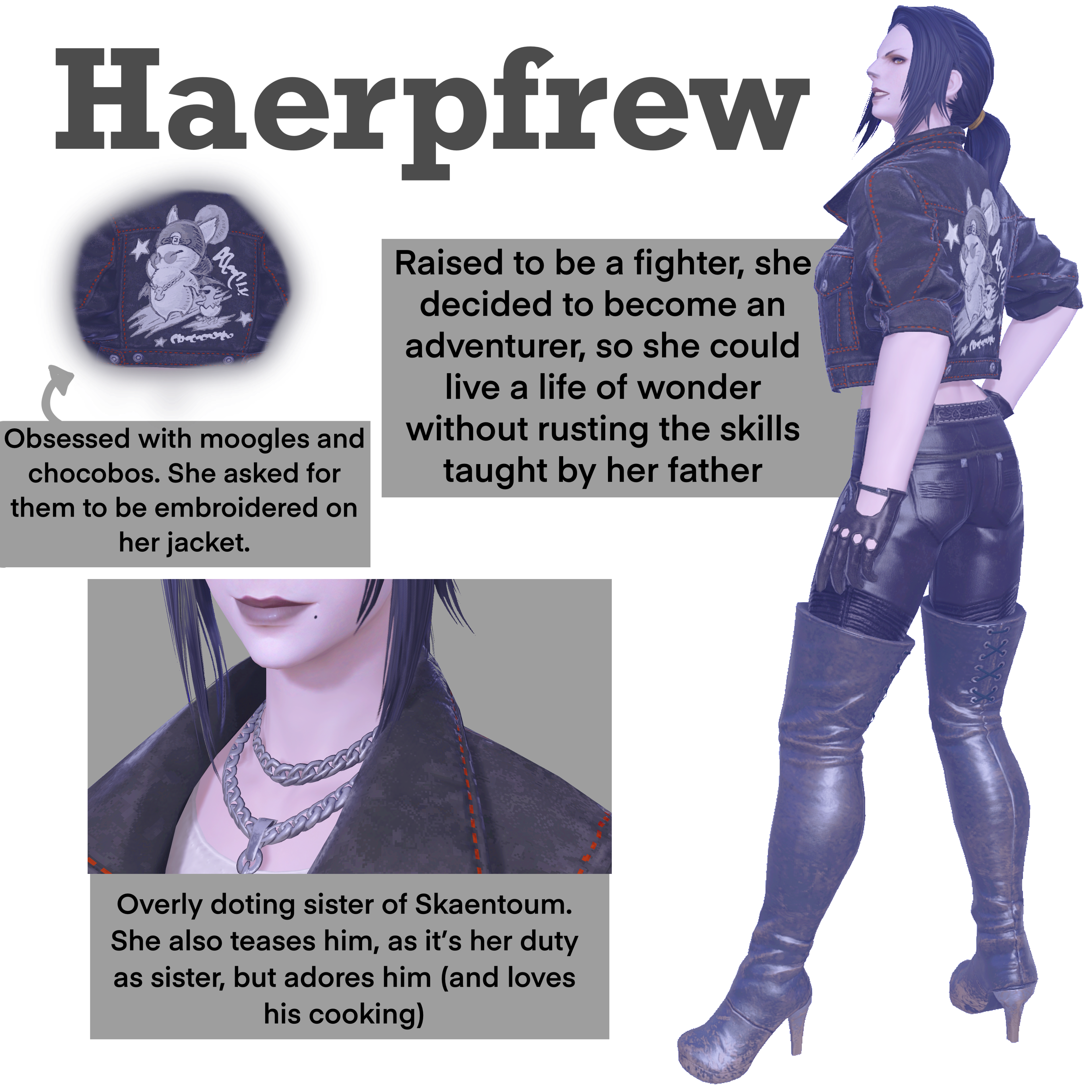 An Au Ra who once suffered a troubled past, he now lives as a freelance retainer to Ishgard's high houses, with the sole purpose of cleaning their manors. Thankfully, his skills allow him to do do quite the thorough job, being also capable of "cleaning" those who would dare to try and harm his employers.
